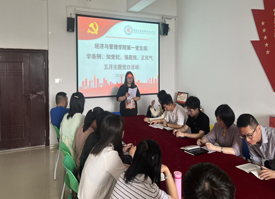 永利集团官网第一党支部开展“学条例、知党纪,强底线、正风气”五月主题党日活动