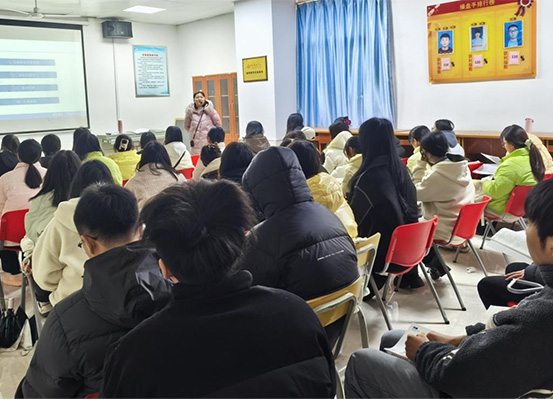 针对上述问题,熊桃慧从三方面解析成因,一是学生与外界信息不对称,学生对智慧文旅、乡村振兴文旅项目等政策红利缺乏了解,就业视野受限;二是学生实践脱节,实践能力较弱,课堂理论教学与行业快速迭代存在“时间差”,部分学生技能更新滞后;三是学生具备心理落差,部分学生对一线服务岗位存在偏见,职业认同感不足,导致“高不成低不就”。随后,熊桃慧向学生展开了详细的分析,并引导学生转变就业理念。