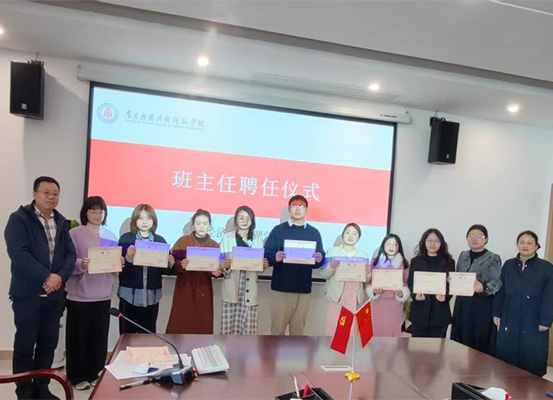 为全面贯彻党的教育方针,落实立德树人的根本任务,推动永利集团官网班主任队伍朝着制度化、规范化、科学化的方向建设,更好地服务学生成长成才,4月1日,永利集团官网在赣新校区沁苑8实506会议室、九龙湖校区1207会议室同步举行班主任聘任仪式。永利集团官网院长胡梨花、党总支书记龙犇、永利集团官网副院长袁江波、党总支副书记朱红梅、全体辅导员、新聘班主任以及各班班长和学习委员出席了此次聘任仪式,会议由学生科兰金辉主持。