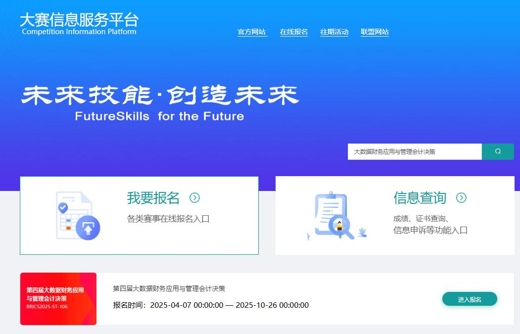 作为学校认定的84项重要赛事之一,2025一带一路暨金砖国家技能发展与创新大赛——大数据财务应用与管理决策赛项已正式拉开帷幕!现启动校内选拔赛,诚邀全校财会、大数据相关专业师生积极参与,以赛促学、以赛提能,共同冲击省赛,在国家级赛事舞台上展现我校专业实力!