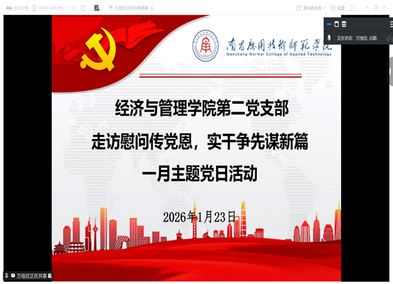 会上,全体党员集中学习了国家主席习近平二〇二六年新年贺词,深刻领会“锚定目标任务,坚定信心、乘势而上”的殷切嘱托,从贺词中感悟初心使命,从字里行间的温暖期许与奋进号召中汲取干事创业的奋进力量。大家纷纷表示,要主动把个人成长融入国家发展和民族复兴的伟大征程,在学习中锤炼过硬本领,在工作中勇挑时代重担,以青春之我、奋斗之我攻坚克难、奋勇争先,为强国建设、民族复兴伟业添砖加瓦。